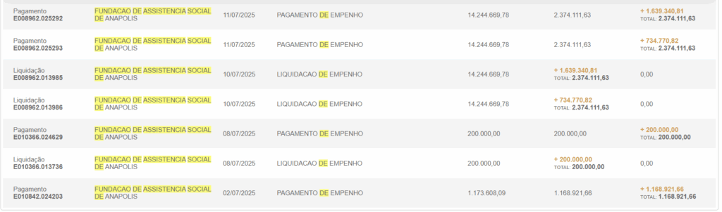Conforme os dados do Portal da Transparência da Prefeitura de Anápolis, somente na primeira quinzena de julho, a Santa Casa de Misericórdia já recebeu da gestão municipal R$ 3.743.033,29 em pagamentos. Este é o valor que já caiu na conta da Fundação de Assistência Social de Anápolis (FASA) que administra o hospital.