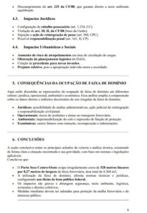 O técnico ainda sugere a notificação para registro de auto de infração ambiental e a adoção de medidas corretivas para recomposição da faixa de domínio. O laudo ainda recomenda que, em caso de descumprimento, seja ajuizada uma ação de ação de reintegração de posse.
