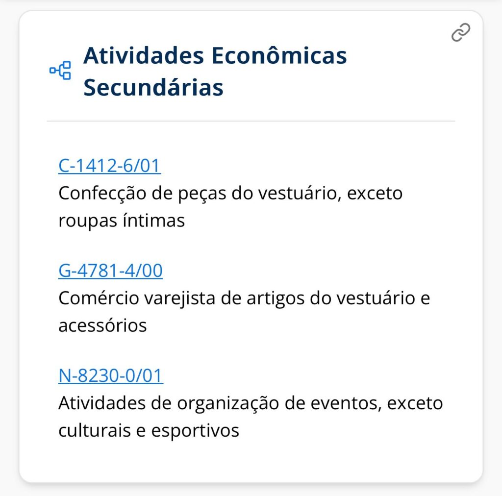 A empresa Legendários, de Nelson Ruela, possui autorização para funcionar nas seguintes áreas: Treinamento em desenvolvimento profissional e gerencial Cnae 8599-6/04), Confecção de peças de vestuário (Cnae 1412-6/01) e “Serviços de organização de feiras, congressos, exposições e festas”, sob o CNAE 8230-0/01.