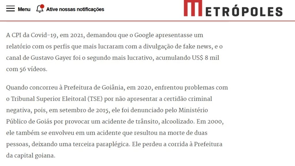 Alguns deles foram citados na Câmara Municipal, durante o debate que levou à rejeição do título de cidadania, e também por portais de alcance nacional como o Metropoles. Como a denúncia do Ministério Público de Goiás por um acidente em que o hoje deputado estaria dirigindo embriagado. O acidente terminou matando duas pessoas e deixando uma terceira paraplégica.