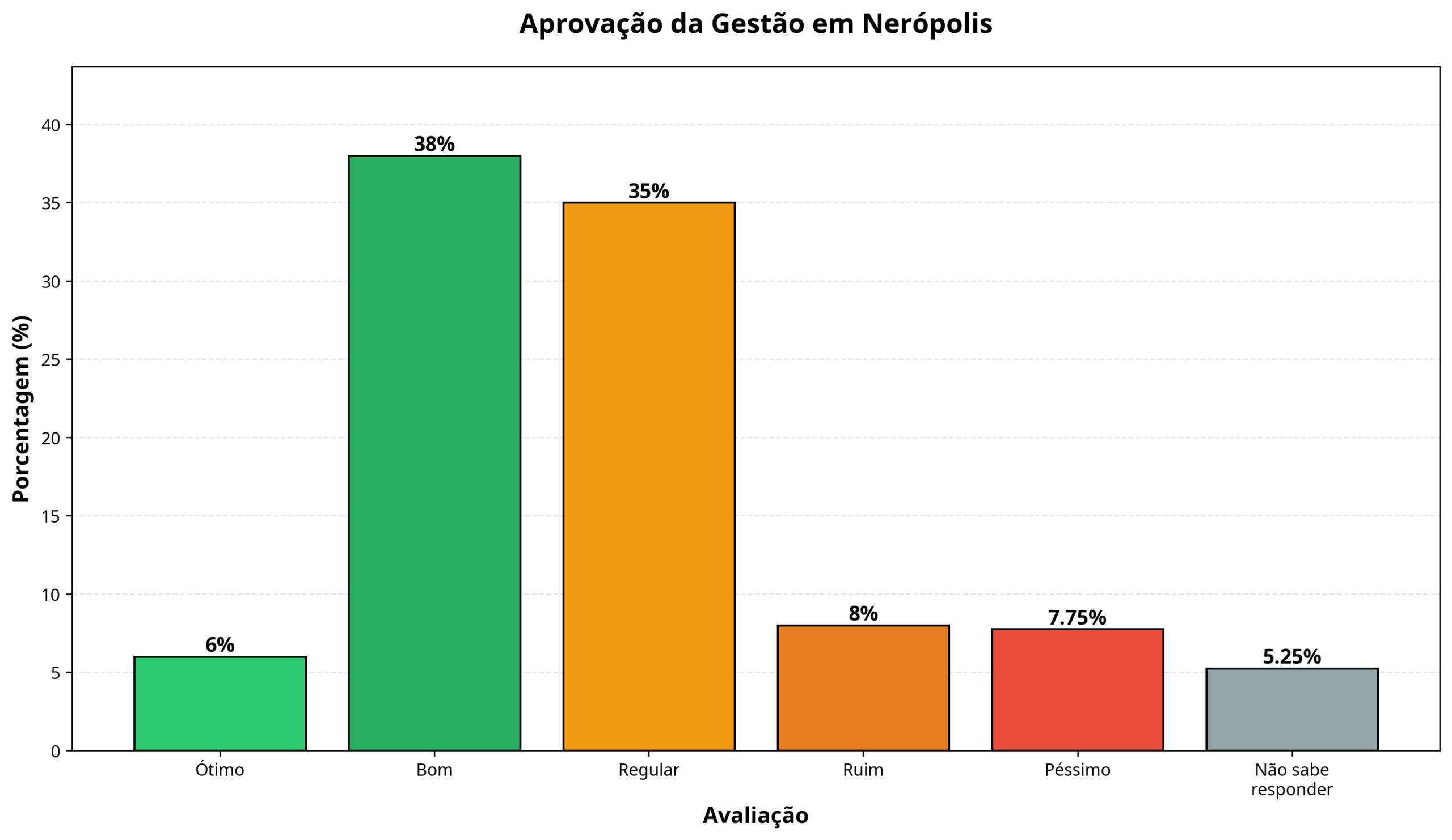 Eleitos num mesmo projeto de sucessão e prometendo um avanço na gestão e no atendimento à população, a administração de Nerópolis tem conseguido entregar o esperado. Pelo menos é o que atesta a aferição: para 43,5% a gestão atual é igual à anterior, de Gil Tavares.