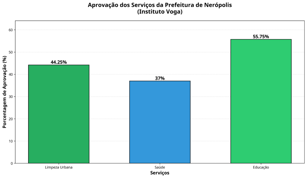 Prestes a completar seu primeiro ano, a gestão municipal de Nerópolis, a 30 quilômetros de Anápolis tem motivos para comemorar. De acordo com a pesquisa do Instituto Voga/Anápolis Diário, a administração de Dr. Luiz (Republicanos) tem 44% de opiniões entre ótimo e bom. E somente 15% desaprovam a administração que ainda não completou 12 meses.