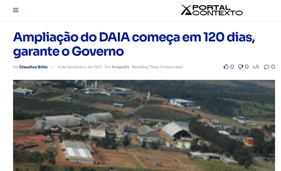 Anos depois, em 2011, o primeiro grande golpe de marketing envolvendo a “ampliação do Daia”. Durante o Governo Marconi Perillo, o então secretário de Indústria e Comércio, Alexandre Baldy (PP) – hoje à frente da Agehab no Governo Caiado – lançou a expansão do território industrial: 50 alqueires.