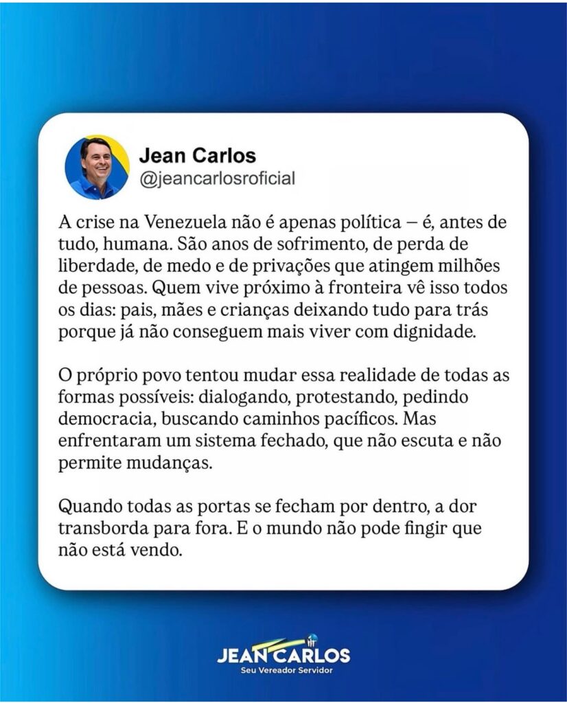 Alguns nomes da política de Anápolis usaram as redes sociais para se posicionar acerca da ação militar norte-americana deflagrada pelo presidente Donald Trump em território venezuelano. O país sul-americano agora está sob comando dos EUA por tempo indeterminado.