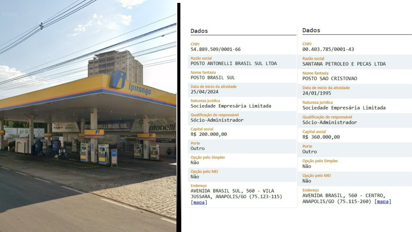 No entanto este também é o endereço de outro posto, Brasil Sul, que, em 2025, foi também o campeão de vendas de derivados de petróleo para o deputado, com R$ 82.145,60. Ou seja, desta forma, em dois anos, um único posto com o mesmo endereço, mas duas razões sociais e registro de CNPJ diferentes receberam R$ 132.547,33 em verbas públicas do Estado de Goiás.