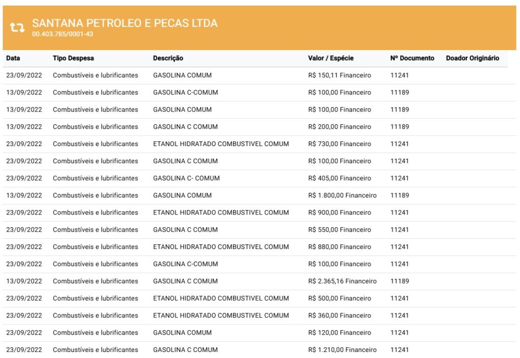 Dados do Tribunal Superior Eleitoral (TSE) referentes à prestação de contas da campanha de Amilton Filho à reeleição em 2022 indicam que dos pouco mais de R$ 13,5 mil gastos com abastecimento de veículos, R$ 10.570,27 foram pagos a um único posto: São Cristóvão. O comércio que atende na cidade há 31 anos é o único a abastecer os veículos do então candidato na cidade. O restante do valor, R$ 2.934,11, foram gastos no Posto Vereda, na cidade de Posse, há 430 km de Anápolis.